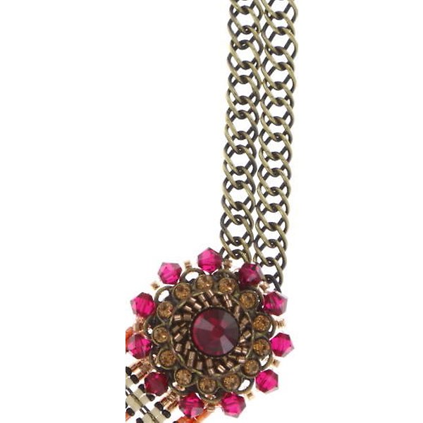 48 mm bended floral element, big bended rectangular elements & bended flower with 10 lines of beads in the centre; 38 cm 2 lines chain neckline