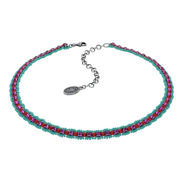 Handgestickte Glasperlen und facettierte Steine aus Kristallglas.