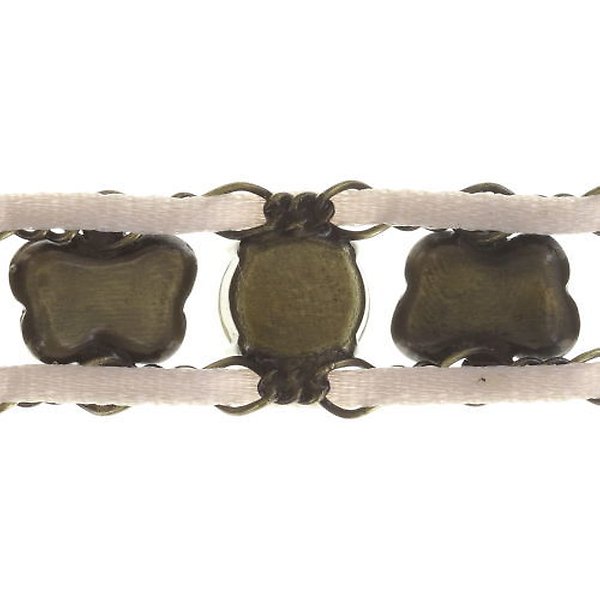 Schmuckelemente aus Kunstharz. Satinband-Stickerei. Facettierte Steine aus Kristallglas.