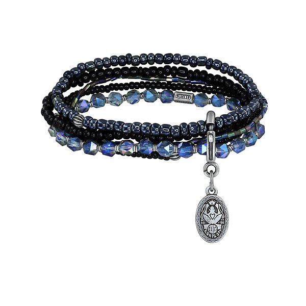 Glasperlen und metallische Schmuckelemente.