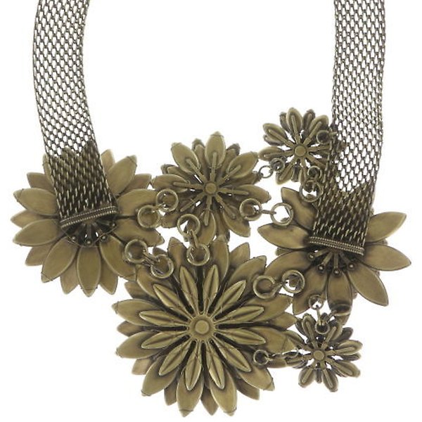 6 different designed bended coloured flowers on 38 cm chain