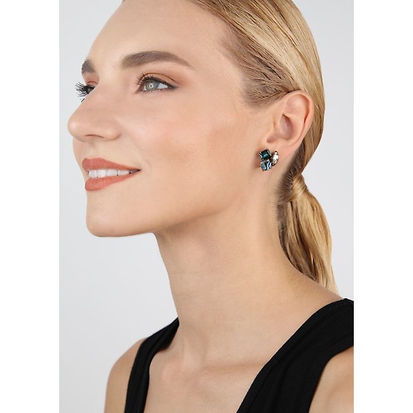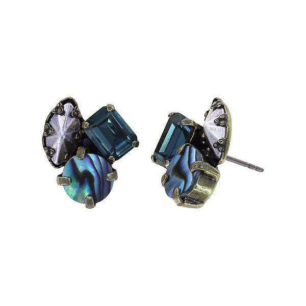 Muschel-Elemente "Abalone", metallische Schmucksteine und facettierte Glassteine.