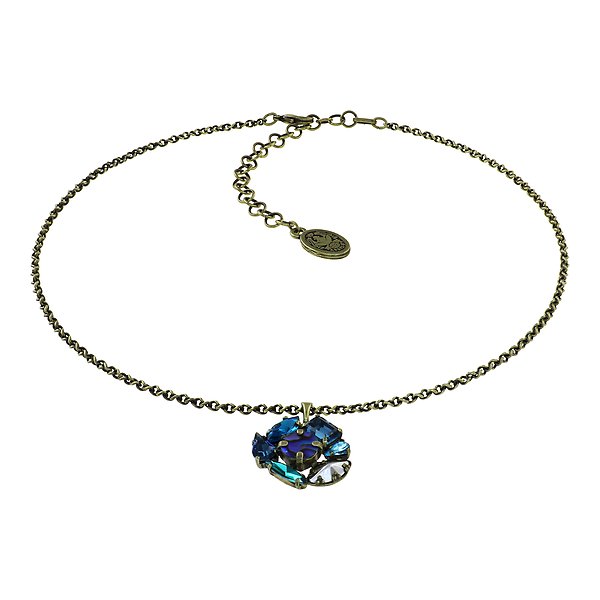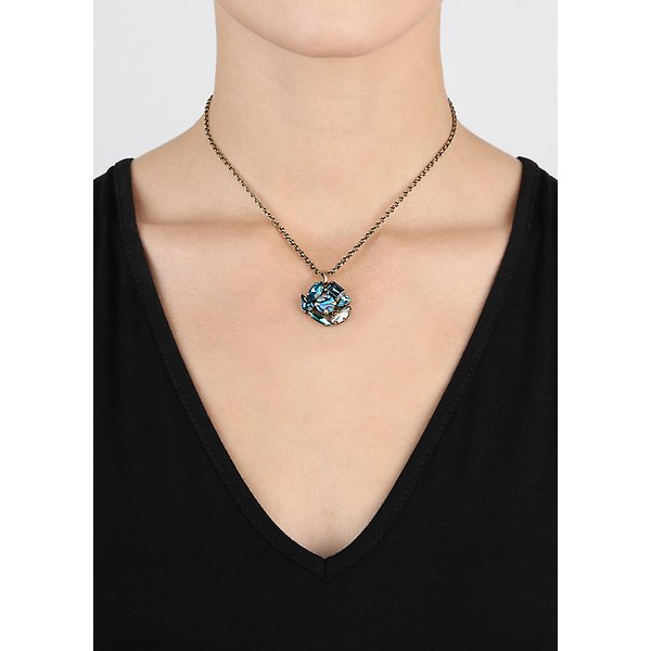 Muschel-Elemente "Abalone", metallische Schmucksteine und facettierte Glassteine.