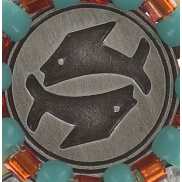 Fische/Pisces - photo shows front and back - Handgestickte Glasperlen. Mittelstein aus Kunstharz und facettierte Steine aus Kristallglas.